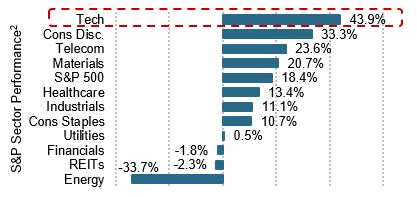 In the early spring of 2020, as the severity of the COVID-19 pandemic became apparent, equity market indices plummeted ~30% and the outlook for the year seemed grim on many, many levels. However, equity markets shrugged off the negative news instead focusing on unprecedented fiscal stimulus and turning their attention to the explosive growth catalyzed by the WFH/WFA environment and focusing their outlook on 2021/2022. By 12/31/2020, equity indices had rebounded with the DOW finishing up 7.3%, the S&P500 up 16.3% and the NASDAQ up a remarkable 43.6%.