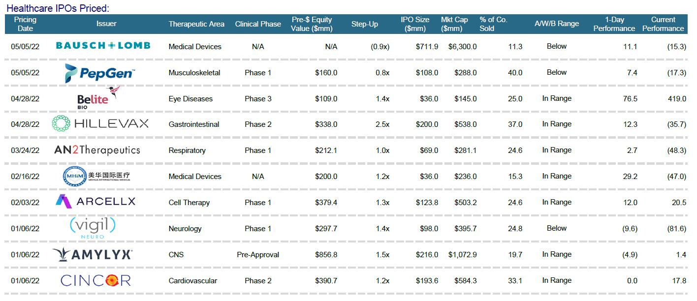 Finally, we are starting to see some more meaningful M&A. Pfizer, in an effort to address the significant increase in migraine episodes associated with current market conditions, is buying BioHaven. BMS is in the process of augmenting its oncology suite by purchasing Turning Point Therapeutics. Merck may have a similar goal but on a larger scale. They are currently courting Seagen (SGEN) and, should they obtain this prize, much needed fresh capital will be available for the sector. Baker alone may have $10b of fresh powder for the sector. Raising capital if possible, synergistic M&A, belt tightening, alternative capital and significant acquisitions are all therapies that are presently being applied to the current malady. Recovery may not be swift nor linear, but one can make the case that the patient will soon be out of ICU.