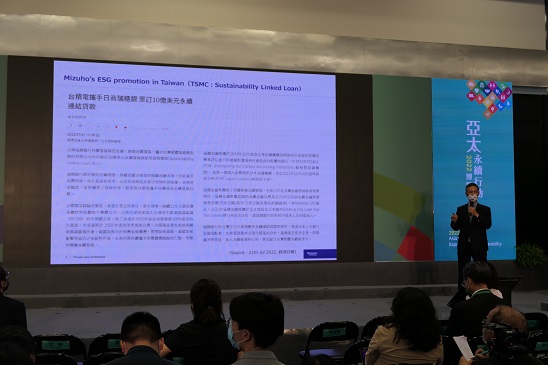 此次演講瑞穗以「Mizuho's sustainability initiatives as a global financial group」為題, 說明跨國金融集團-瑞穗的永續行動。出席該論壇的演講者以政府機構及台灣企業為中心, 瑞穗是唯一登台的外商金融機關。