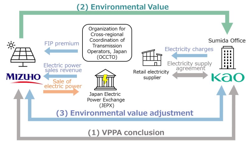 Kao Corporation (Kao), Mizuho Bank, Ltd. (Mizuho Bank) and Mizuho Leasing Company, Limited (Mizuho Leasing) have announced the recent conclusion of a virtual power purchase agreement (VPPA) between Kao and the Mizuho Leasing Group.