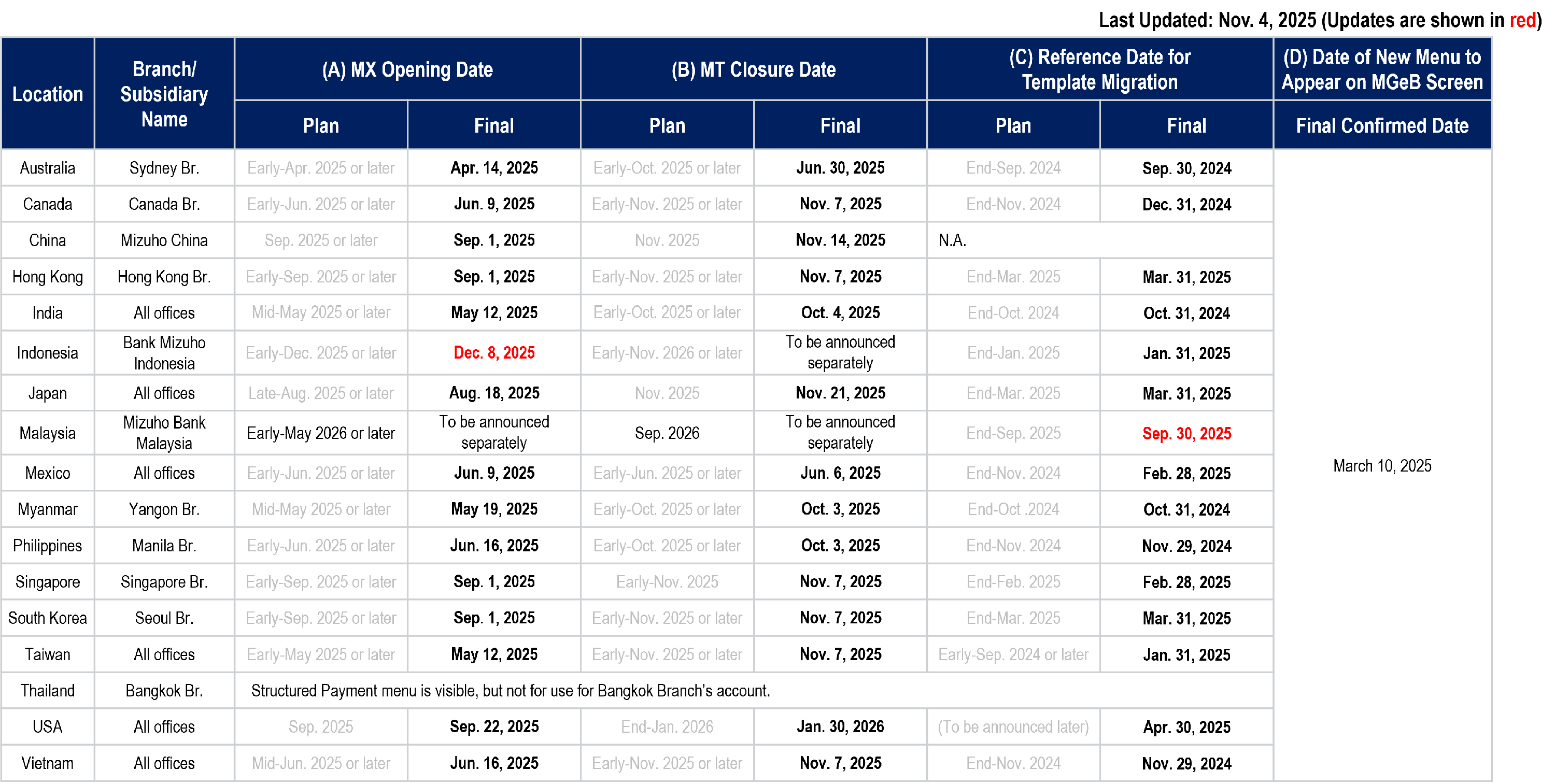 (C): Reference Date for Template Migration: The reference date of the data that Mizuho will reflect the Template information to the newly added Structured Payment Menu in Mizuho Global e-Banking (MGeB)