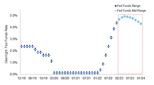 In one of the most aggressive rate tightening campaigns in recent U.S. history, the Fed was able to raise rates from effectively 0% to 4.25% - 4.50% in just nine months. For the majority of 2022, Fed Chair Powell and his committee were essentially the key market catalysts. Heading into 2023, investors are keen on understanding how much further they are willing to increase rates and for how much longer. As of year-end, investors had priced a terminal rate of 4.75% - 5.00% in May of 2023. This will only hold if inflation continues to decelerate and the jobs market shows signs of softening. For the February meeting, investors have priced a 25bps rate hike, but economic data releases between now and then will be the key determinants in deciphering if the Fed is more hawkish or dovish to start 2023.