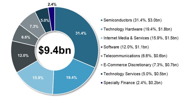 In 2022, TMT issuers raised $18.5bn, which amounted to 15% of overall issuance proceeds generated during the year. For perspective, this was only 2.9% and 9.7% of total issuance and total TMT issuance in 2021, respectively.