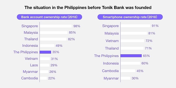 Although 70% of the population of the Philippines did not possess a bank account as of 2018, smartphone usage is high, particularly among the young, with mobile payments and other digital financial services spreading rapidly, even among people without bank accounts. Given this, Mizuho believes banking services provided through digital channels will help drive the development of financial infrastructure in the Philippines. In February 2022, this belief led Mizuho Bank to invest in Tonik Financial Pte. Ltd. (CEO: Krasnov Grygorii; “Tonik Financial”), which operates Tonik Digital Bank, Inc. (“Tonik Bank”), a digital-only neobank operating under the Tonik brand and the Philippines’ first private company to secure a digital bank license.