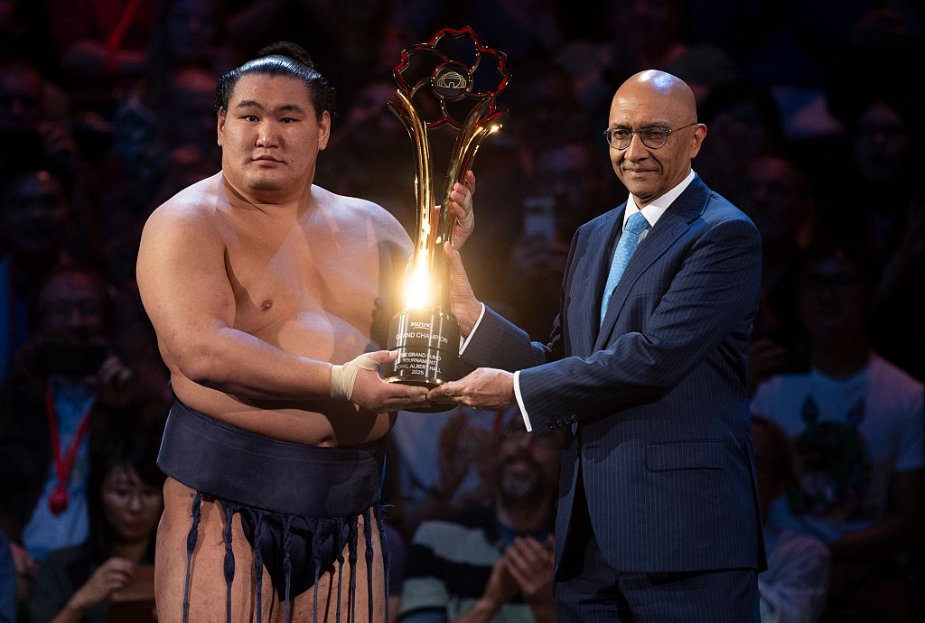 The tournament culminated in a proud moment for Mizuho, as our Deputy Group CEO, Suneel Bakhshi, presented the winner’s trophy to Hoshoryu, the reigning Yokozuna. This symbolic gesture underscored our deep respect for the sport and our role in supporting its global reach.