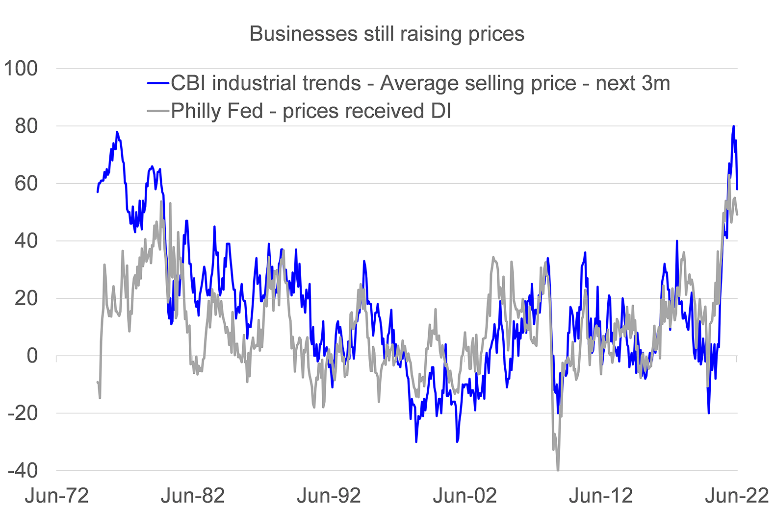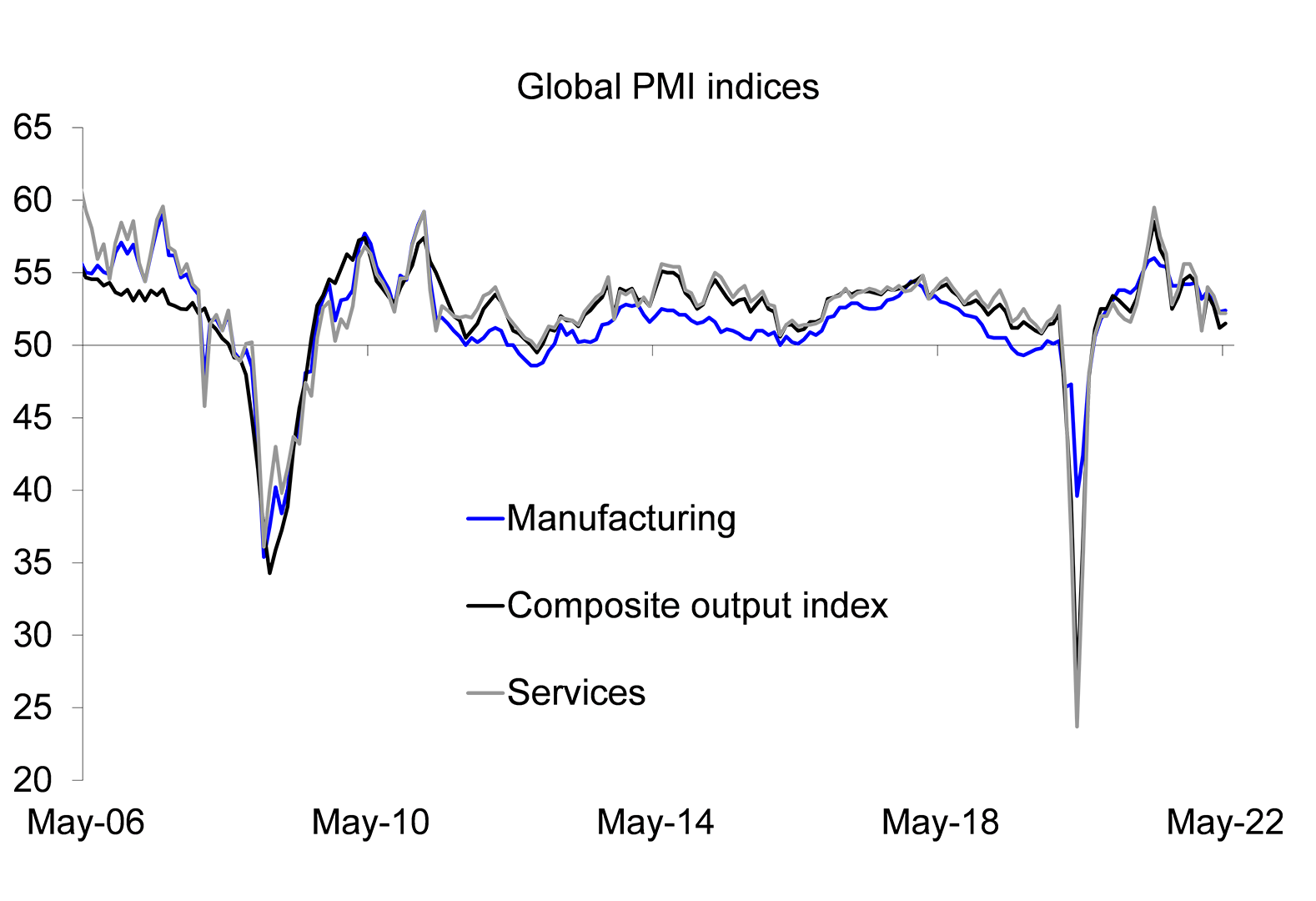The message from the recent flash PMI surveys for June is that supply chain strains are easing but alas only very gradually. This should help lower prices for industrial goods but it looks as if such has been the economic momentum that pressures from the service sector will substitute for rises in industrial good prices in coming quarters and slow the decline in inflation. This leaves an unpromising backdrop for central banks. Inflation is sufficiently elevated that it remains the key focus even as the signs of the impending slowdown build. In recent cycles the prospect of weaker demand would lead to a rapid slowdown in tightening plans by central banks. This time round, such an abrupt stop is not possible given the inflation outlook. Rates are likely to remain high in the short run. Even in a recessionary scenario, it will hard to cut rates until there is clear evidence that inflation is set to undershoot target.