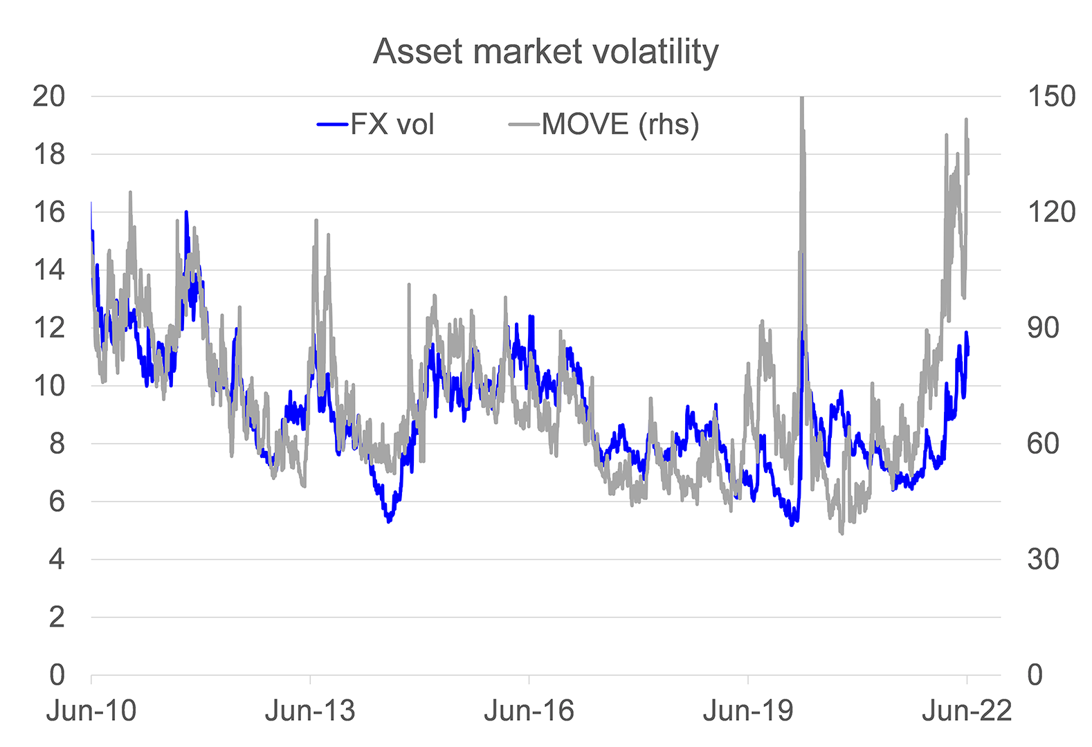 The more elevated inflation outlook makes for difficult times for central banks. In general central banks are mainly concerned with the demand side of the economy as the supply side is slow moving and not especially responsive to monetary policy. Central banks are trying to align demand with existing supply over an 18~36m horizon over which changes in interest rates impact the economy. However, in the wake of the Covid crisis, the supply side of the global economy has been has been significantly more volatile than usual, which complicates the issue for central banks. The failure of participation rates to normalise has led to very tight labour markets, which are an increasing source of inflationary pressure in a way they haven’t been for many years. The growth outlook is weak enough to slow the pace of tightening in normal times but the current backdrop is anything but normal. With inflation yet to peak, it is likely that central banks will talk and probably act tough even as the outlook darkens. In his semi-annual testimony Chair Powell noted the commitment to the fight against inflation was “unconditional”. This should keep financial conditions tightening and asset markets under pressure. We see weak asset markets as a solid backdrop for the US dollar in the short run but expect that once inflation has more clearly peaked, the greenback will give back some of its recent gains.