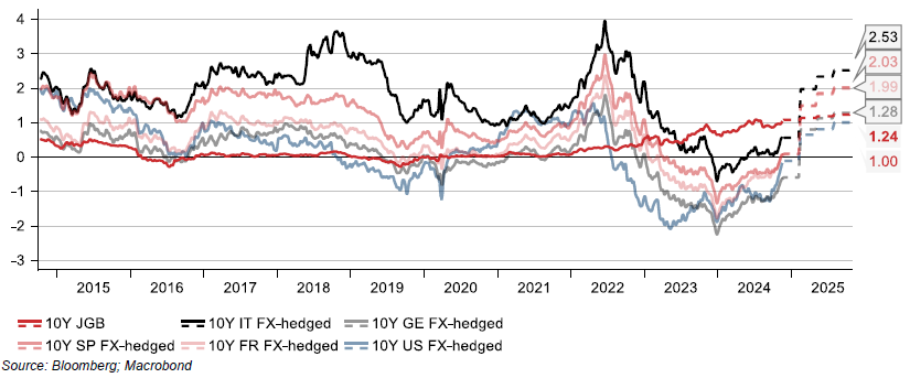 JP investors attitude towards EUR duration: EGB yields look increasingly attractive on an FX-hedged basis