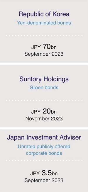 Mizuho Securities has earned a first–class reputation as an industry leader in bond underwriting operations backed by proven skills in proposing solutions inherently–suited to market conditions and issuer needs, an ability to determine prices that accurately reflect investor demands, an incomparable responsiveness to market changes, and a strong track record in bond sales.
