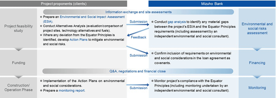 Mizuho Bank recognizes that large scale development projects may have adverse impacts on the environment and local communities. To minimize and/or mitigate the environmental and social risks and impacts associated with such large scale developments, Mizuho Bank works in partnership with our clients to identify, assess and manage such risks and impacts as required under the Equator Principles.