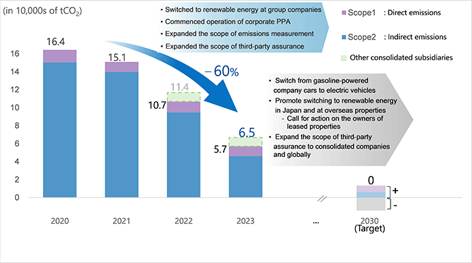• Expansion of the scope of carbon neutrality target to the consolidated group (previously limited to seven group companies)