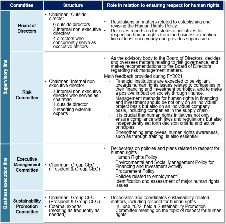 Closeup (Supervisory and business execution line committees and roles related to respect for human rights)