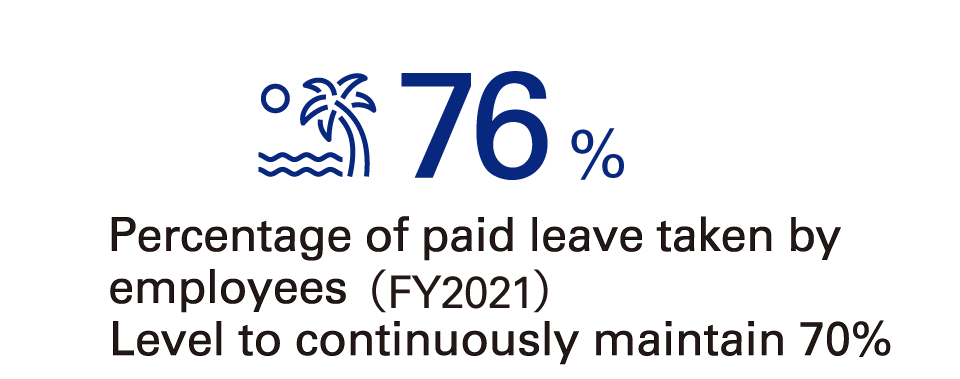For employees to demonstrate their maximum value as personnel and enthusiastically play an active role, it is essential to have a supportive working environment. To that end, in addition to supporting the physical, mental, and social health of employees, we are further expanding our system enabling flexible working styles according to the circumstances of each employee regardless of time or place, and we are making various efforts to facilitate balancing of work, childcare, and nursing care.